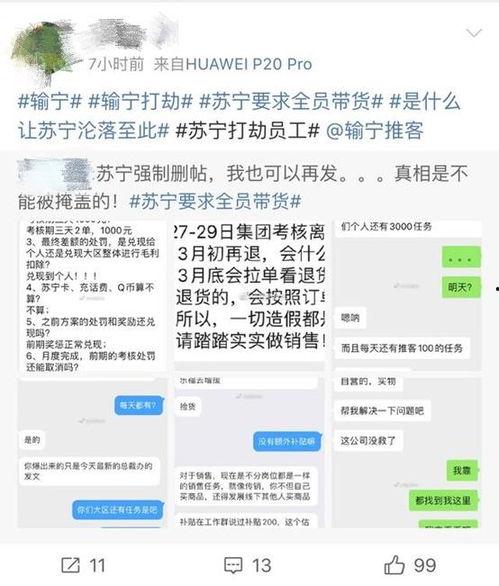 你知道吗?最近苏宁员工又爆出了大瓜!这次可是涉及到了公司内部的一些秘密,让人听得是津津有味。下面就让我来给你细细道来,保证让你大呼过瘾!